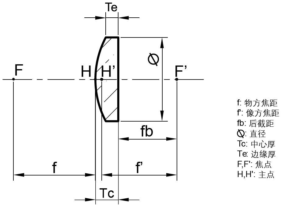 材料: K9 、熔融石英 中心偏差:3°焦距(f'): ±2%@587.6nm 光圈:1~5直径公差 (φ):+0.0/-0.20 局部光圈:0.2~0.5中心厚度 公差(Tc):±0.1 光洁度:40-20 60-40镀膜:MgF2增透膜 通光孔径:>90%平凸透镜通常用来聚焦平行光。平凸透镜的前后表面不对称,因此可以有效地减小球差,特别是在物像距离不相等的应用场合中。最佳应用是将物体放在无穷远处(即视为平行光入射),在焦平面成像。此时,物象共轭比(即物距/ 像距)为无穷大。透镜的凸面应该朝向物方方向放置。