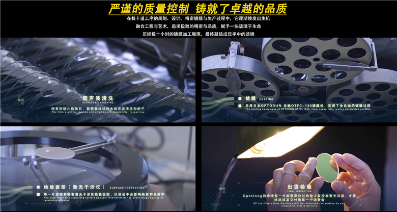 严谨地质量检验———每一块滤镜经过光度计光谱检验、激光干涉仪面型检验。